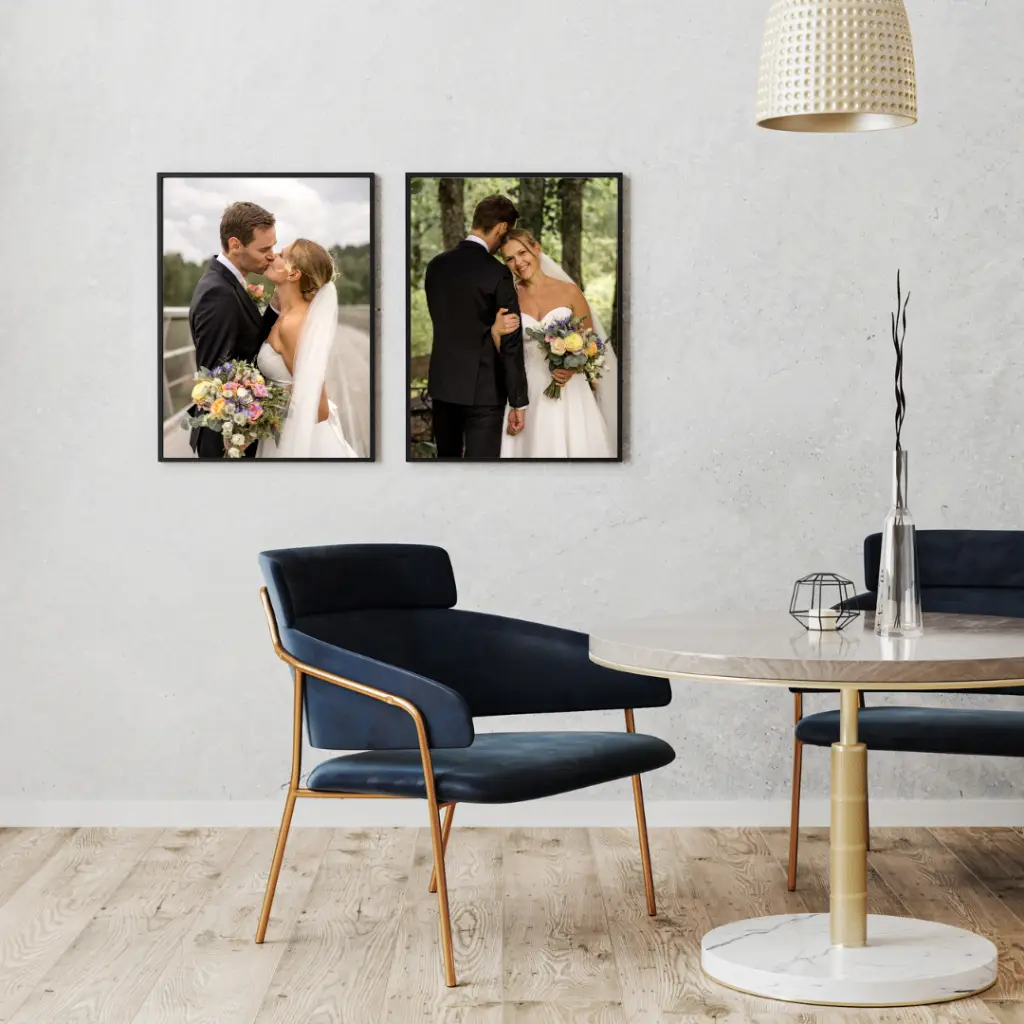 Bildene fortjener mer enn å bli liggende på en skjerm. Når minnene får plass på veggen, blir de en naturlig del av hverdagen - noe dere ser, stopper opp ved og kjenner igjen dere selv i. Jeg skaper tidløse veggprint og album som tar vare på følelsene fra en av livets viktigste dager, og som får leve videre i hjemmet deres.